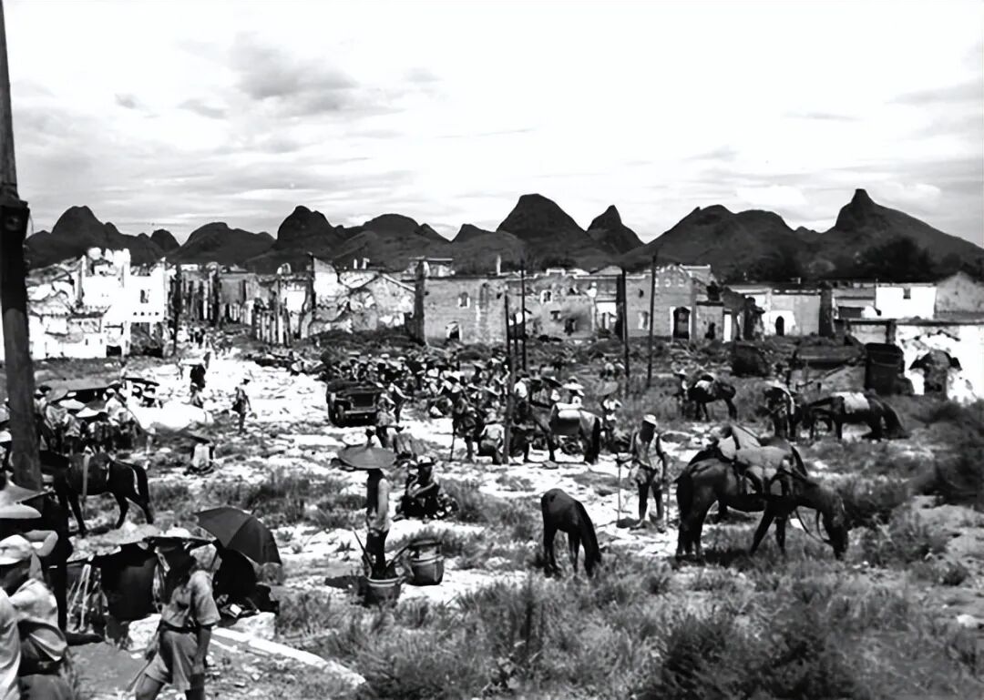 1945年8月21日,桂林,除了墙里面什么也没有,日本撤退前彻底毁坏了这座城市。