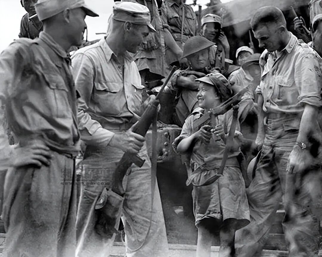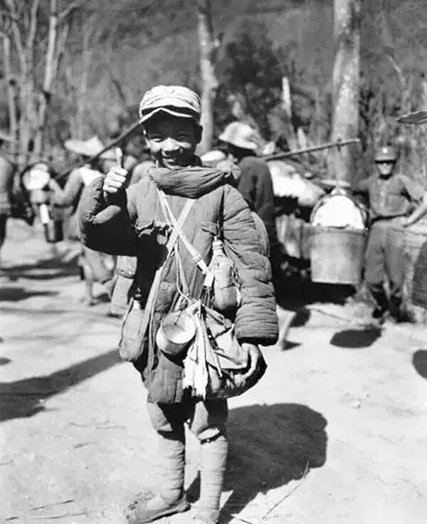 1944年9月2日,中国军队第14 师42团队列里最年轻的士兵。他就是云南人李乐贝,年仅12 岁,但是已经入伍一年。