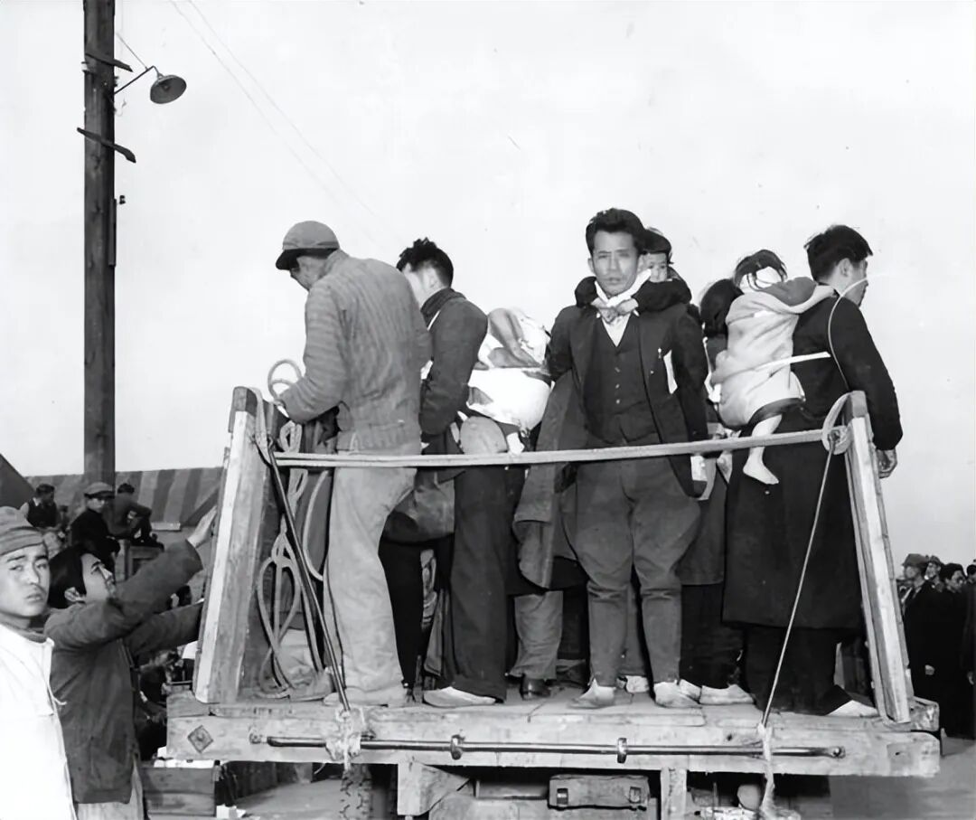 1946年1月23日,被营救的日本遣返人员。从日本海军"ENOSHIMA"丸上被营救的日本遣返人员。