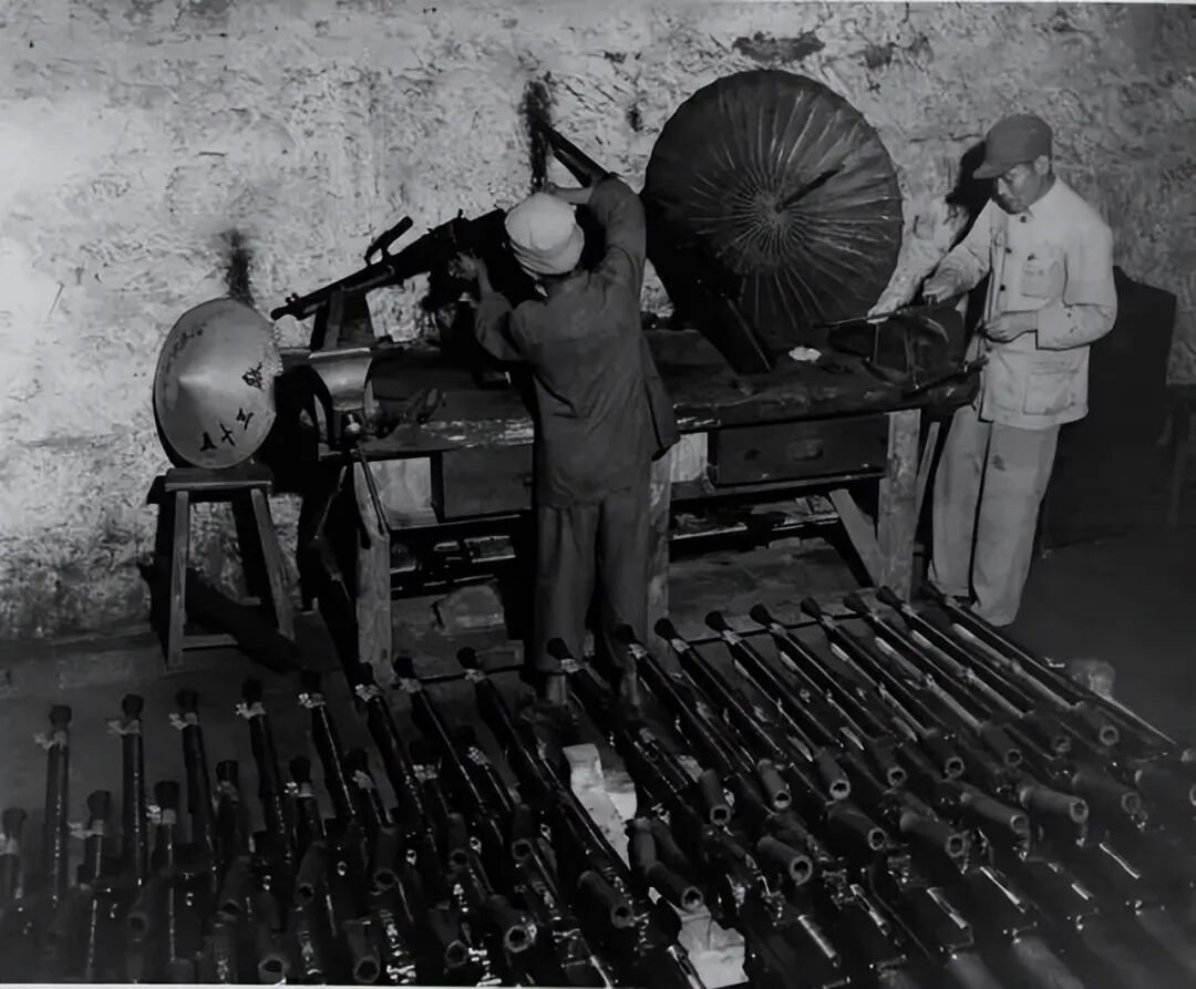 “枪支从地下生长”出来。照片中的轻机枪到了装配的最后阶段。