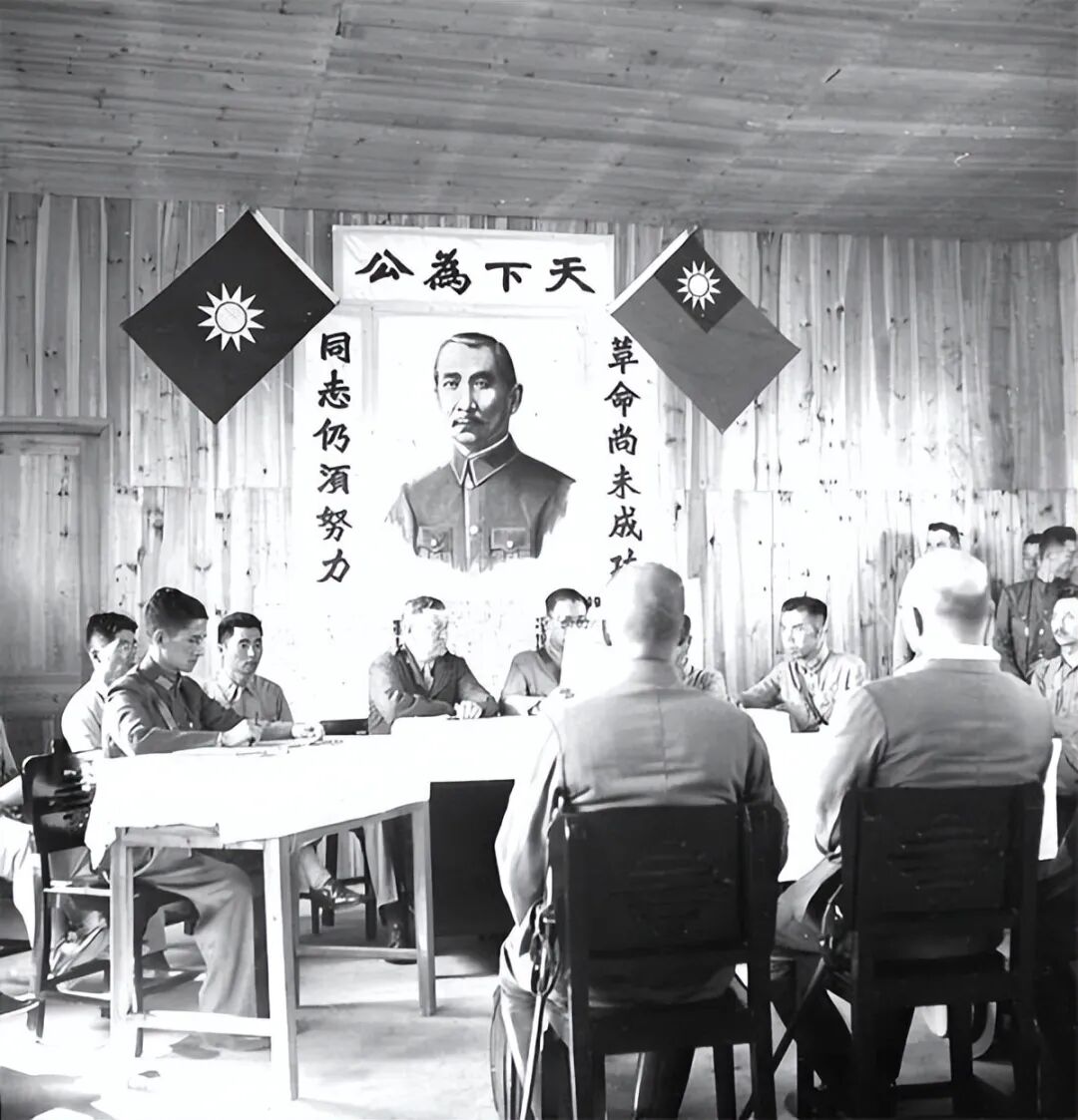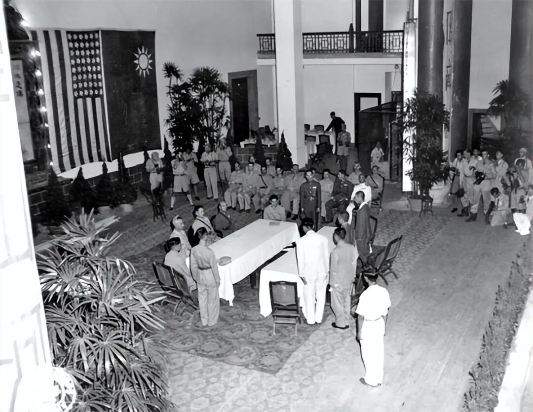 1945年8月21日,湖南芷江,中国受降代表陆军参谋长萧毅肃向日军投降代表今井武夫等训话。