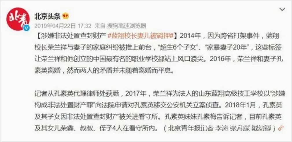今年9月份,山东蓝翔教育集团有限公司正式注销,老板荣兰祥与妻子孔素英的”大战,也算是落下帷幕了。
