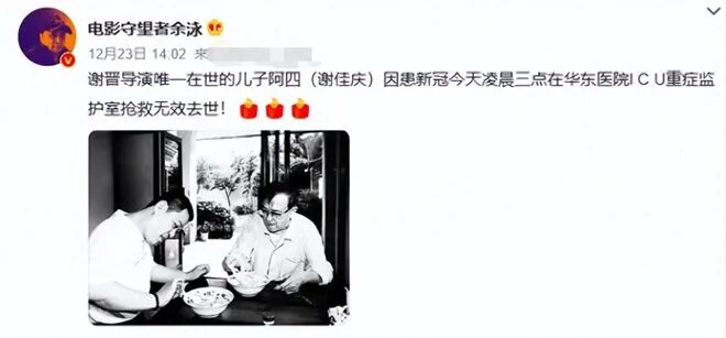 而白发人送黑发人的痛,谢晋再一次完完全全,深深刻刻地感受。