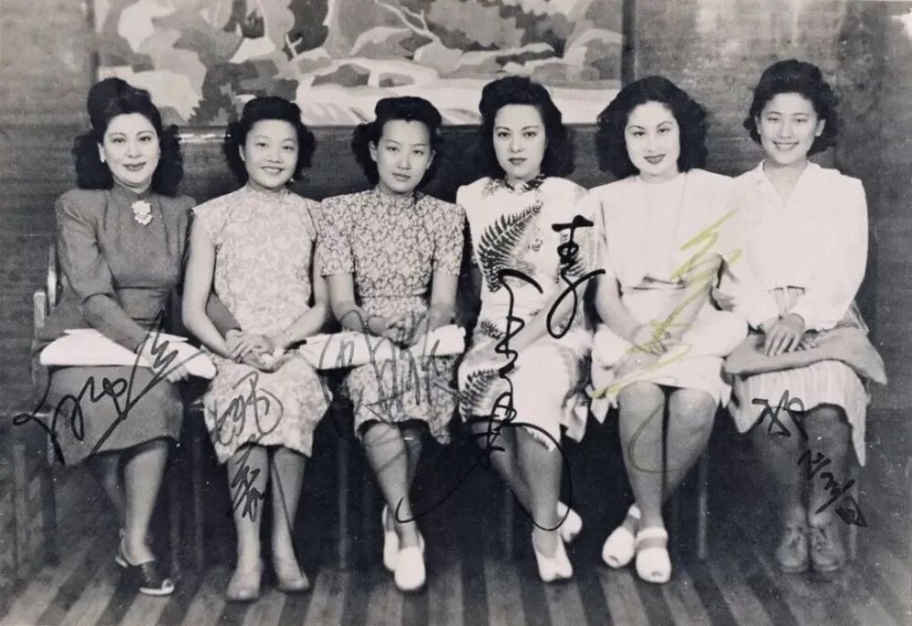 上海滩七大歌后中的六位(除龚秋霞),从左至右:白虹、姚莉、周璇、李香兰、白光、吴莺音。