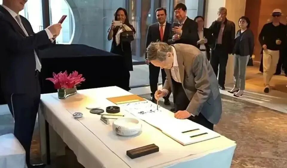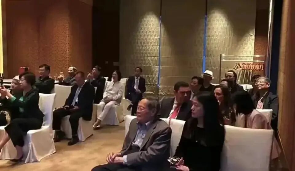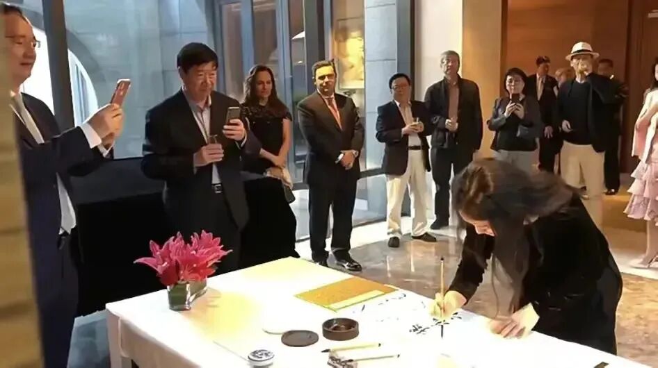 主办方为二人准备了纸和笔,让他们写下名字收藏纪念。当天杨振宁先大秀书法,写完后精神振奋,立刻喊话翁帆过来写,他称翁帆为“darling”,此话一出,全场的人都在起哄。