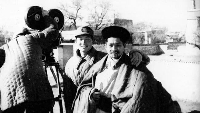 方化(右一)在《内蒙人民的胜利》的片场