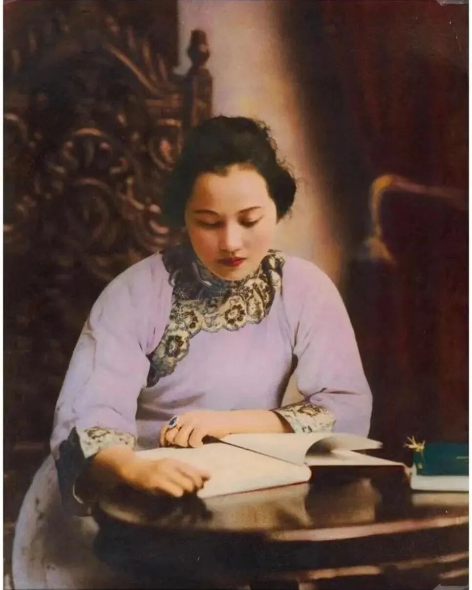 1918年,时年25岁的宋庆龄。这张照片被公认为宋庆龄生平最美的一张照片,原为黑白照,此件为手工上色照。