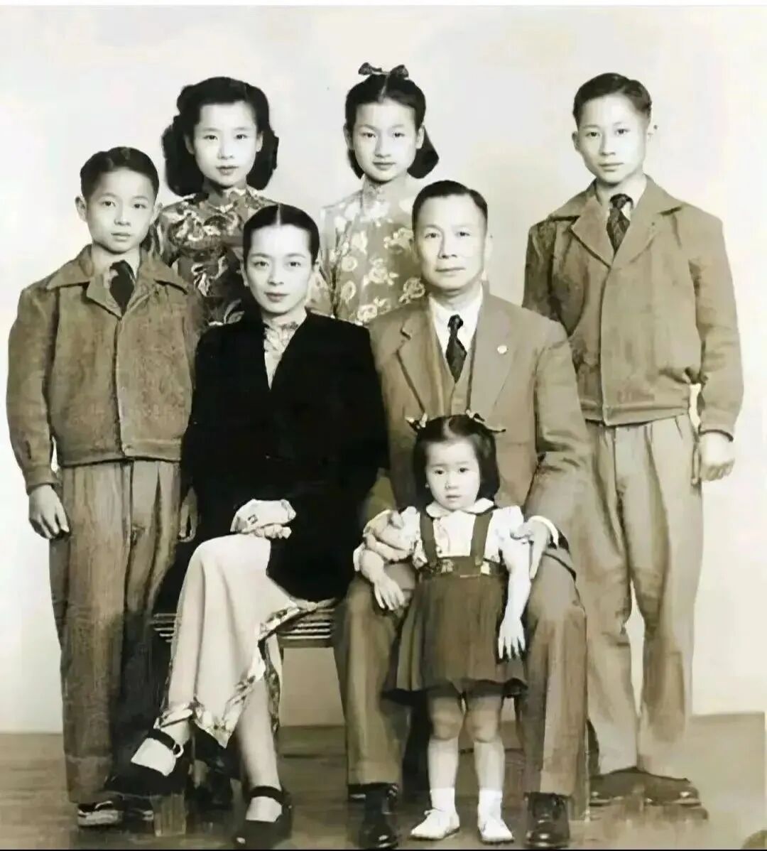 1945年,江苏,民国时期,南京市长刘纪文的全家福。