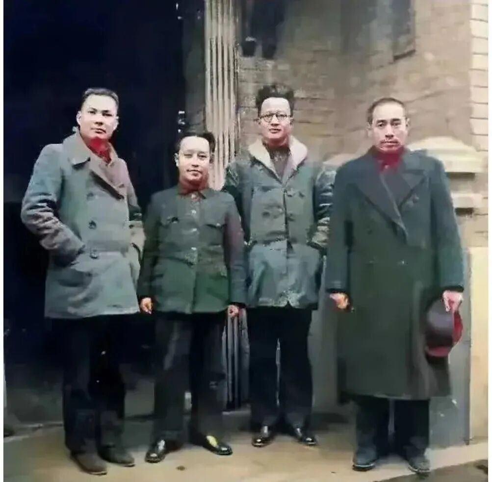 1938年,武汉。右起:周恩来,秦邦宪,王明,叶剑英在八路军办事处门前合影。