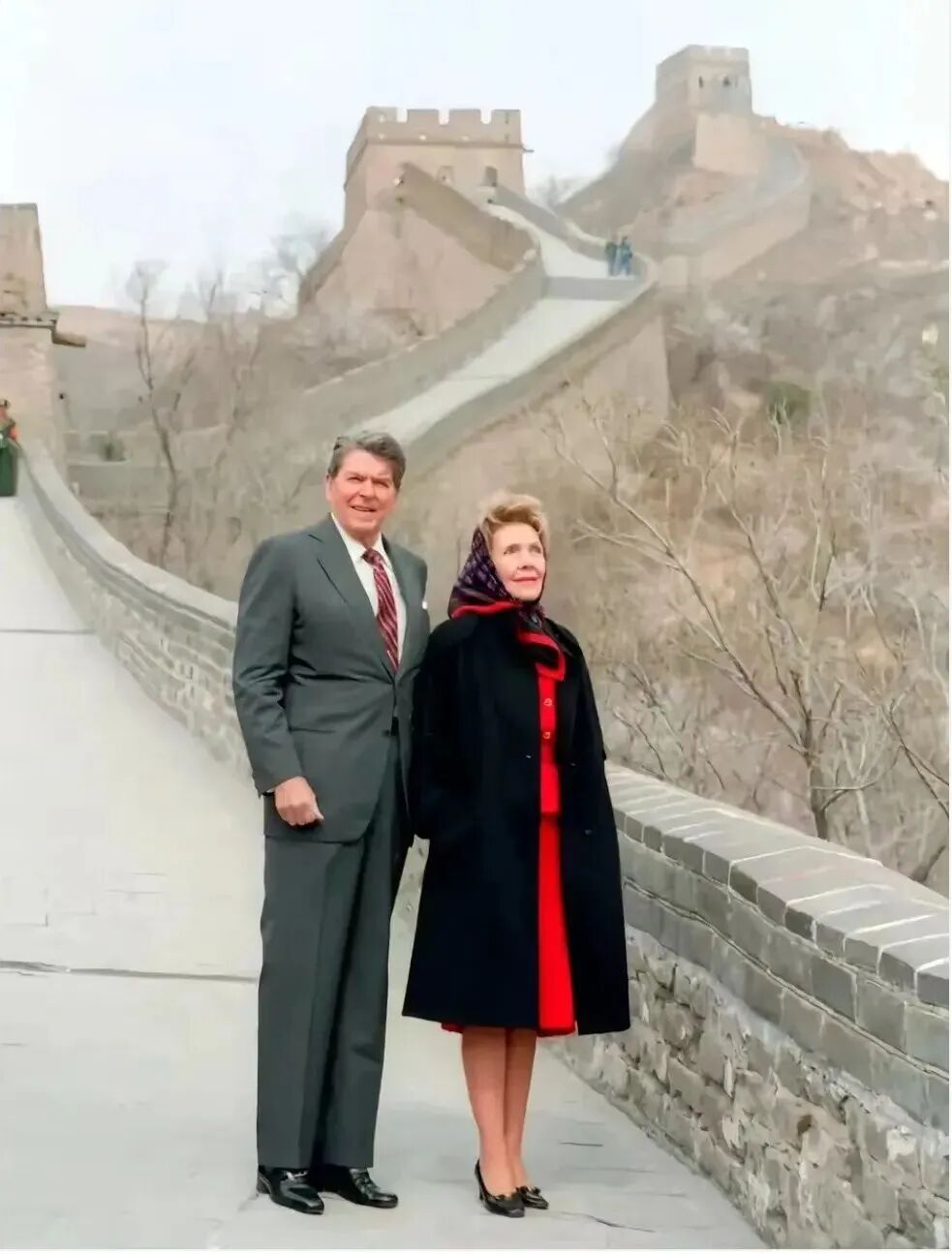 1984年,美国总统里根访华,与妻子南希·戴维斯登上长城留影。