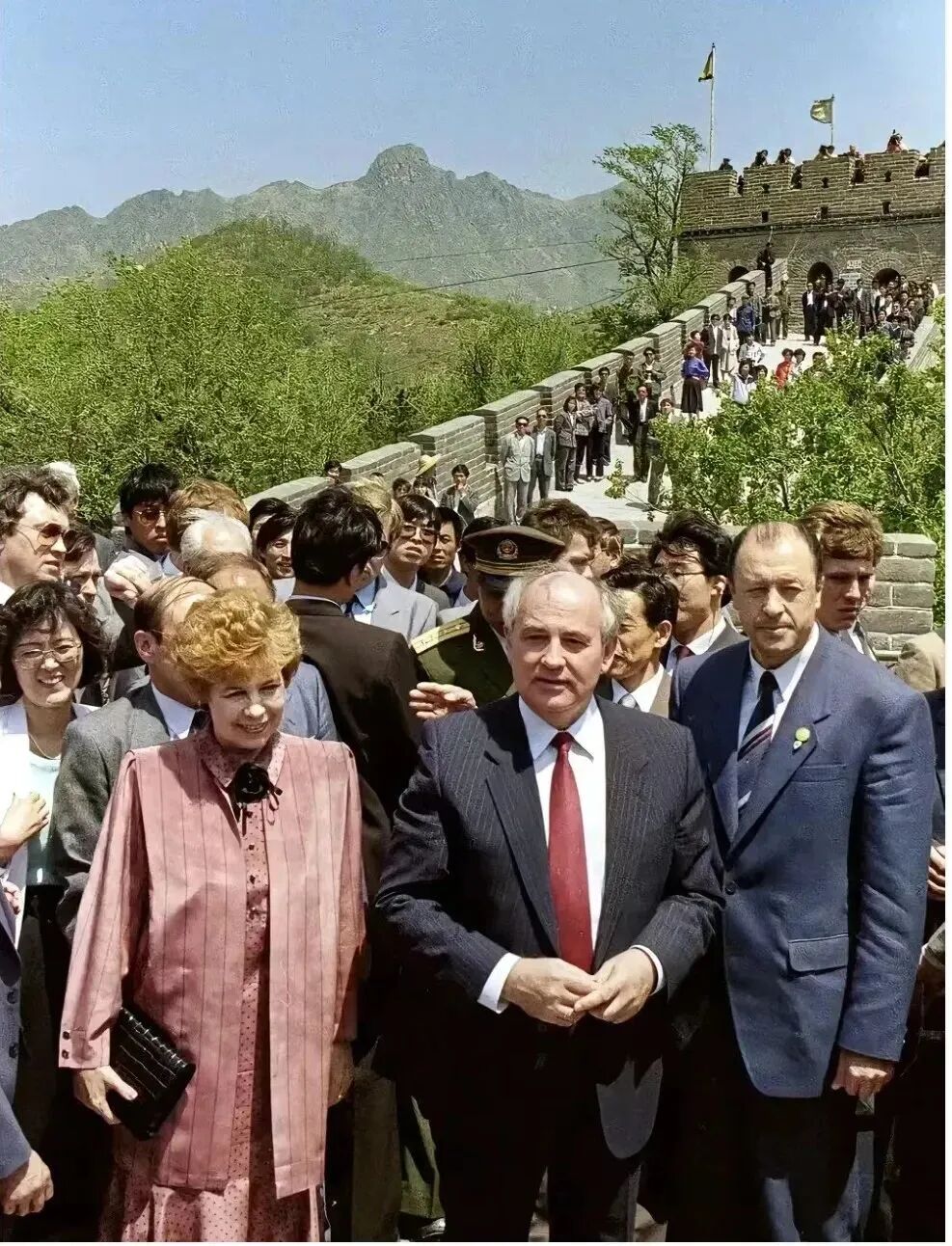 1989年5月,苏共中央总书记米哈伊尔·戈尔巴乔夫(1931年3月2日—2022年8月30日)游览中国长城。