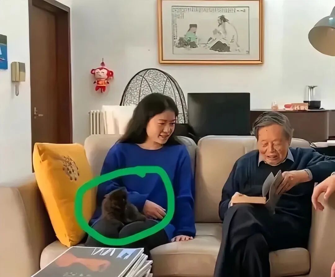 大家还注意到,翁帆的腿上坐着一只非常可爱的小猫,它也很安静地听着杨振宁先生的讲话。