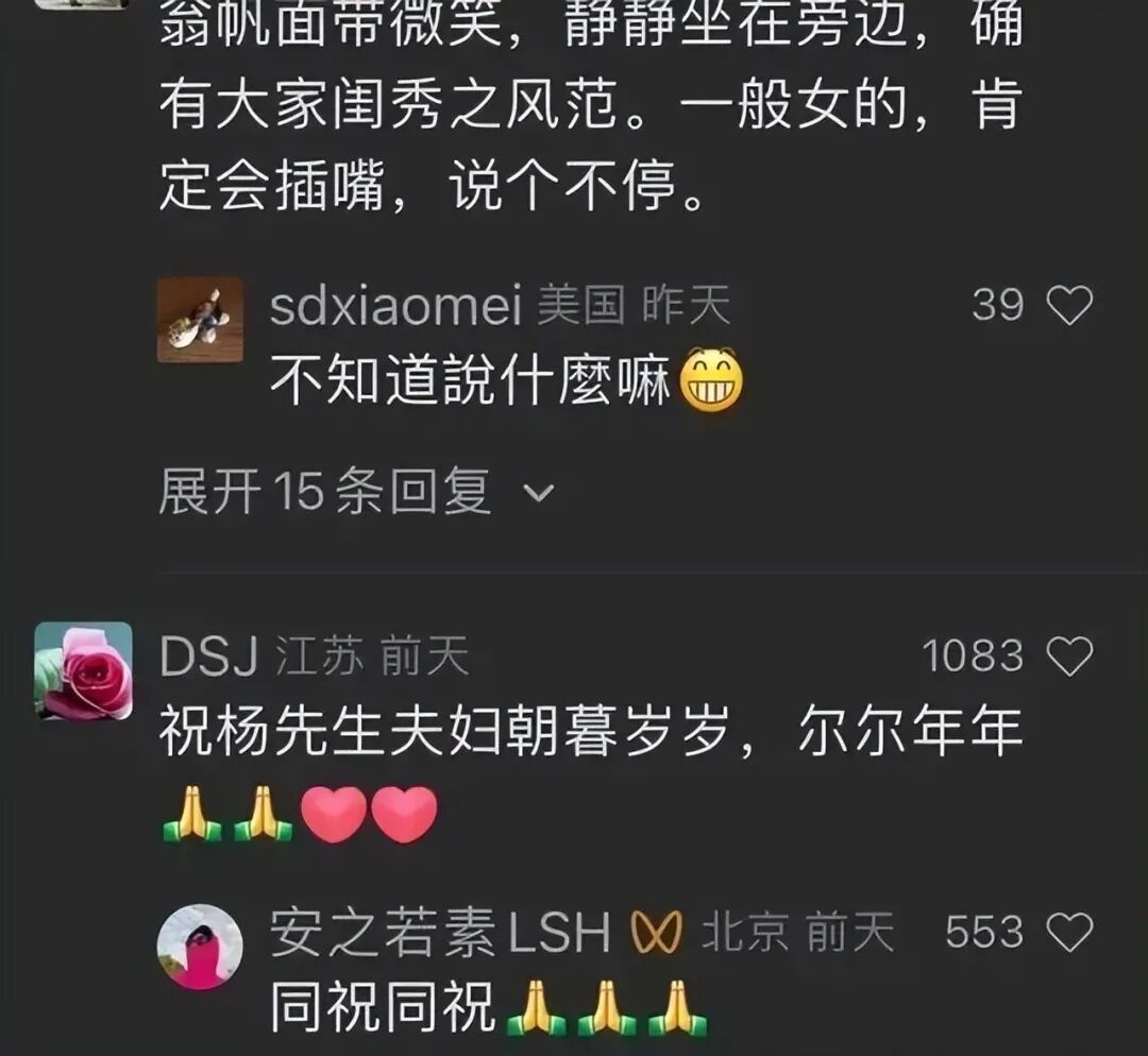 网友们纷纷称赞翁帆女士的气质与修养,这种气质是无法伪装的!