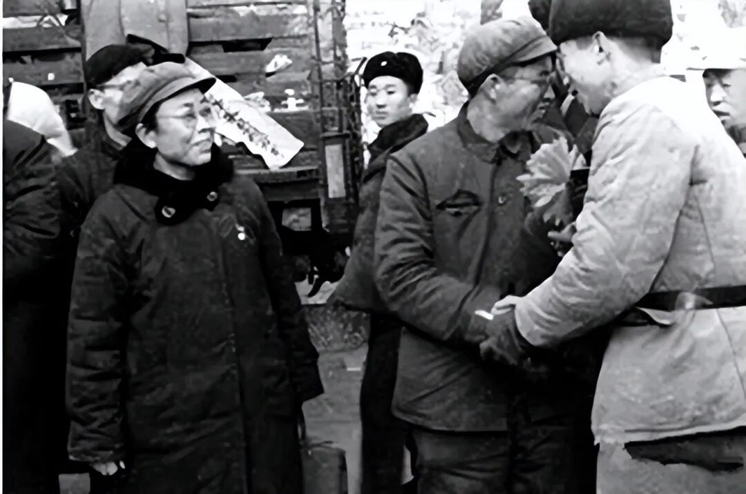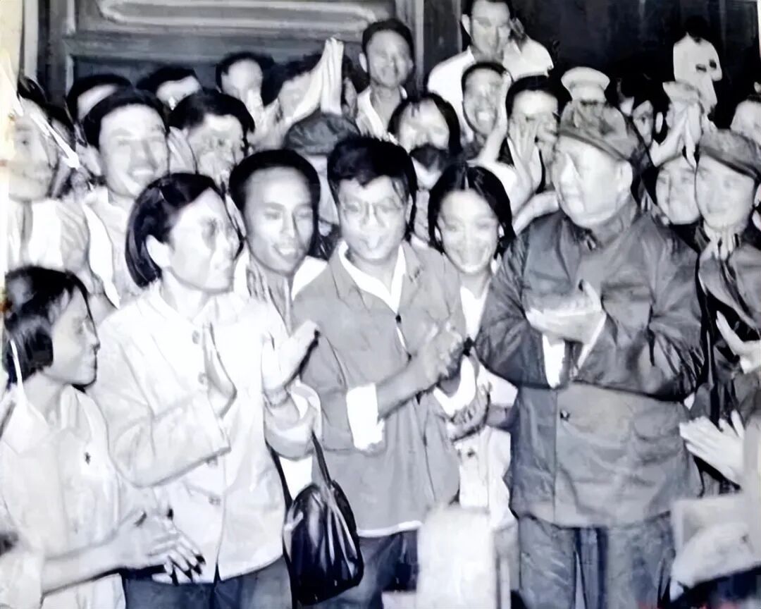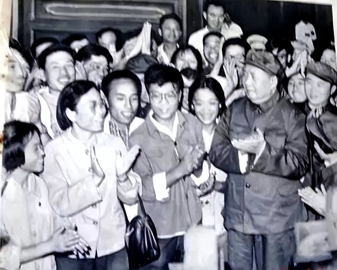 1968年3月,聂元梓(左4)与北大师生在颐和园