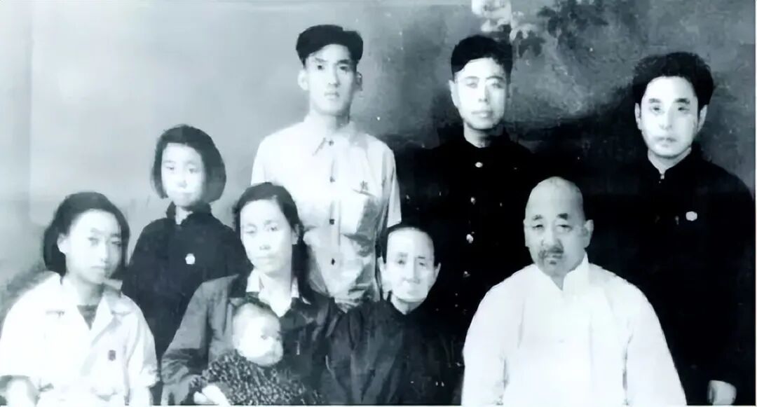 聂元梓全家福,她出生于革命家庭。前排抱小孩者为聂元梓