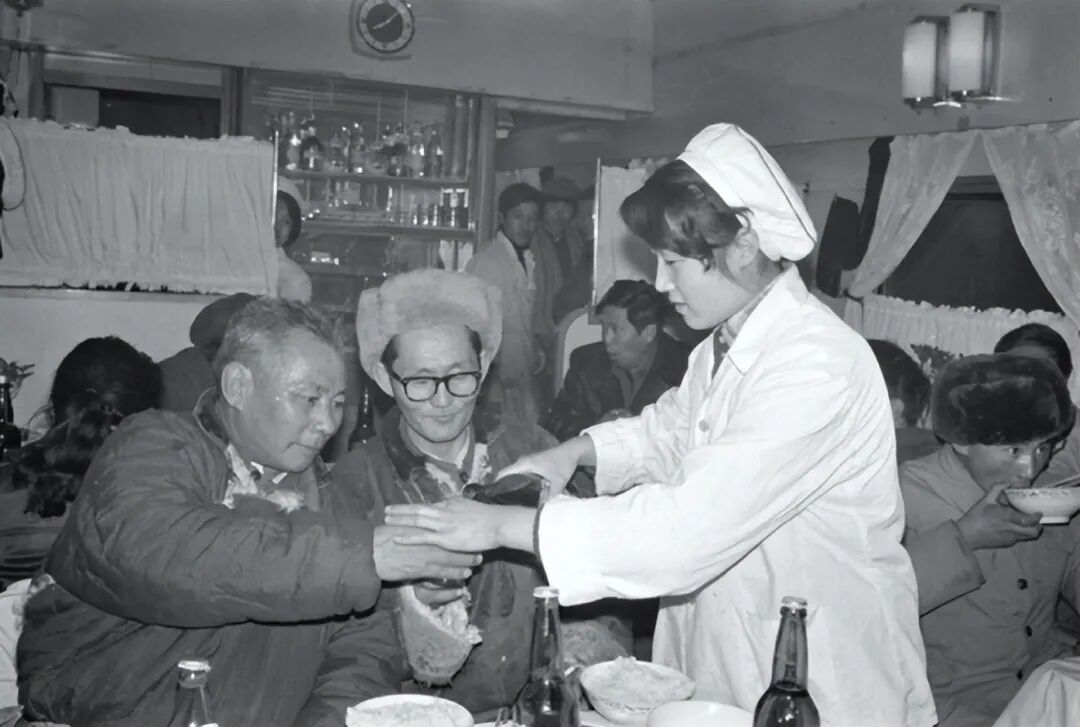 1982年,荣获铁道部流动优胜红旗的呼和浩特至北京89/90次列车,在春运期间热情为旅客服务。新华社记者 白斯古郎 摄