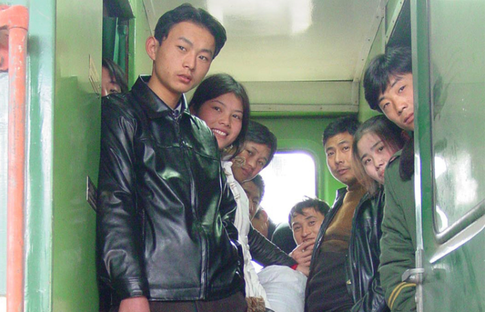 2004年1月7日,一列上海至安徽阜阳的临时客车停靠南京火车站时,一些旅客挤进车厢过道里乘车。新华社发