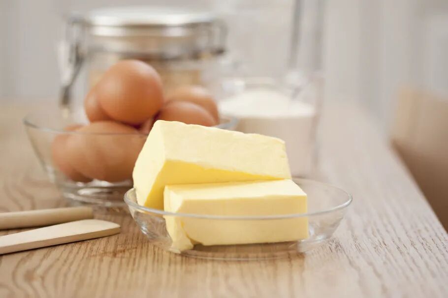 在常温下,黄油是淡黄色的柔软膏状,当加热至34℃以上会融化成液态,不同状态的黄油有着不同的用途。