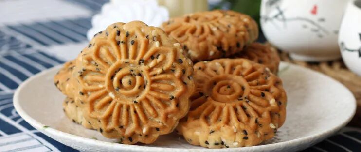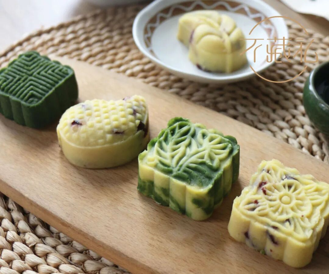 每年的月饼模具花式又多又精致,一年只用一次太可惜了。近年新中式点心很红,利用月饼模具可以让点心的美貌度更上一层楼。它适合用于一些比较干、容易成型的硬质面团,比如桃酥、绿豆糕、造型饼干。