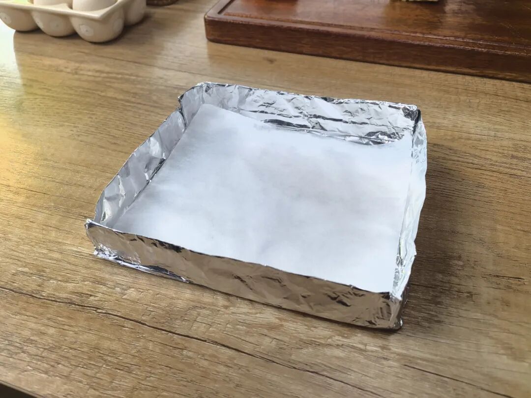 不过,如果你认为他们仅仅只会躺在烤盘上,那就太小看他们了。当年我做私房的时候,会临时接到奶油蛋糕的急单。按照正常方法去制作的话,时间都是来不及的。做过戚风的人都知道,烤蛋糕+完全晾凉的时间,最少需要2个半小时。那我会怎么解决呢?用锡纸折出3个方形纸盘(比如客户需要6寸圆蛋糕,方盘的大小要能覆盖圆片),底部垫上一张裁成合适大小的油纸,然后把蛋糕糊平分倒进去后去烤制。烘烤+放凉的时间,是常规制作的1/4左右,不耽误赚钱还省心。