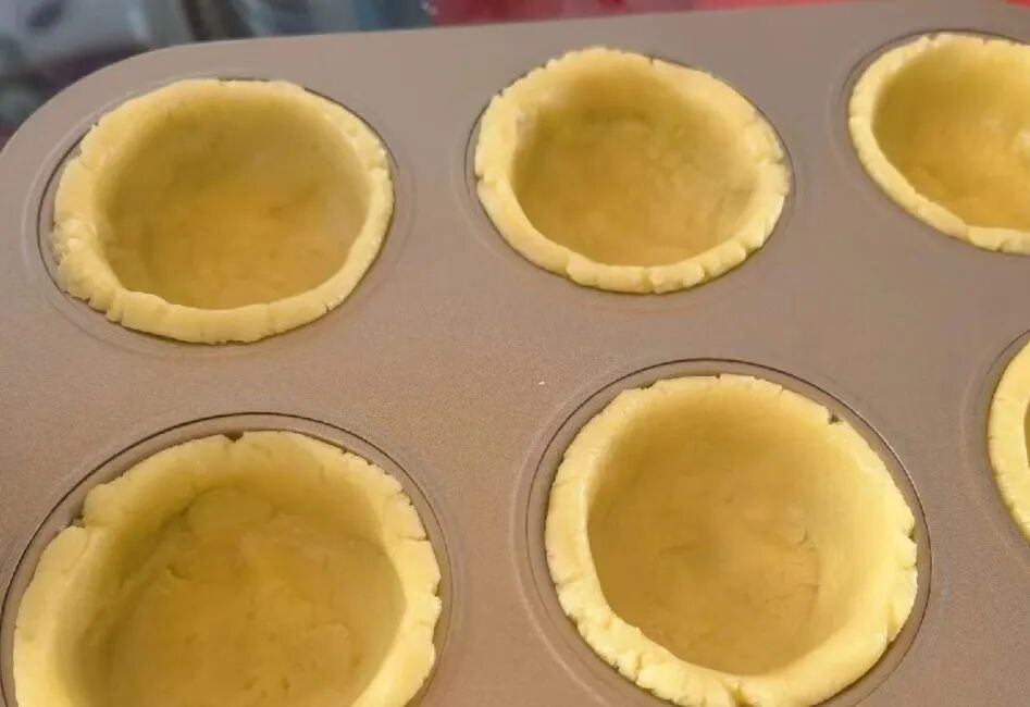模具的反面也不能放过,它的里外都能做成挞皮,如果你的模具是高杯状,那形状会更加接近爆火的“盘挞”、“徳式蛋挞”。