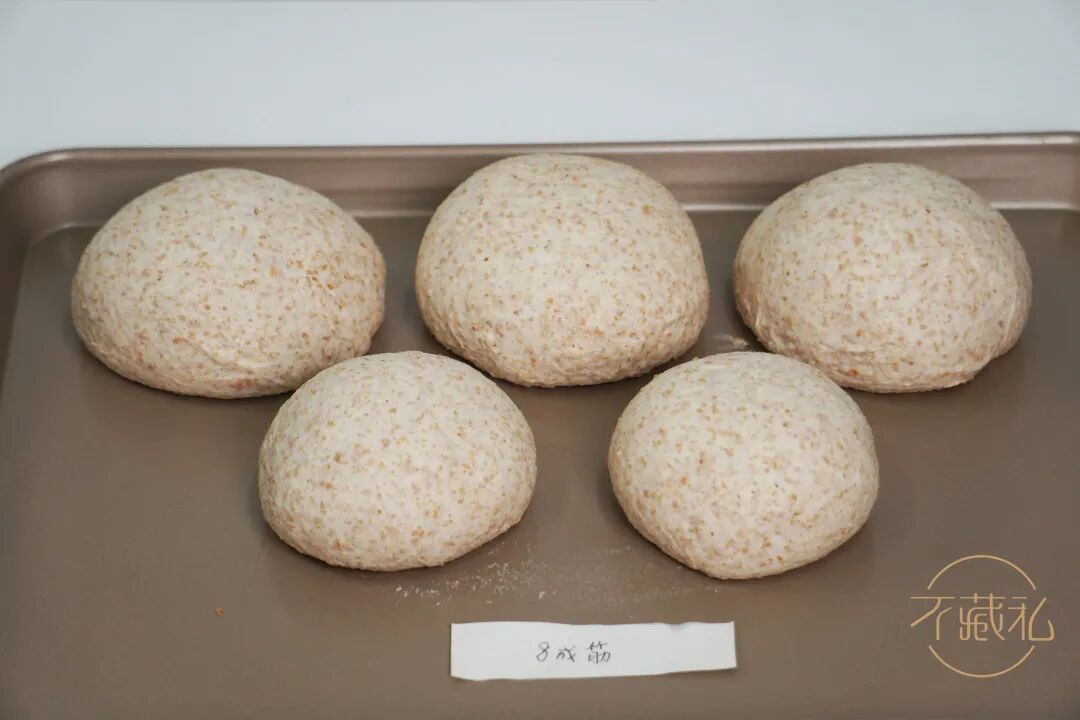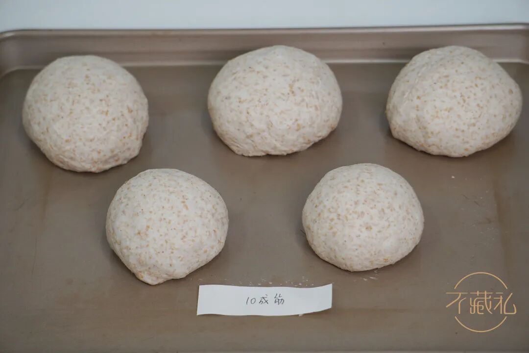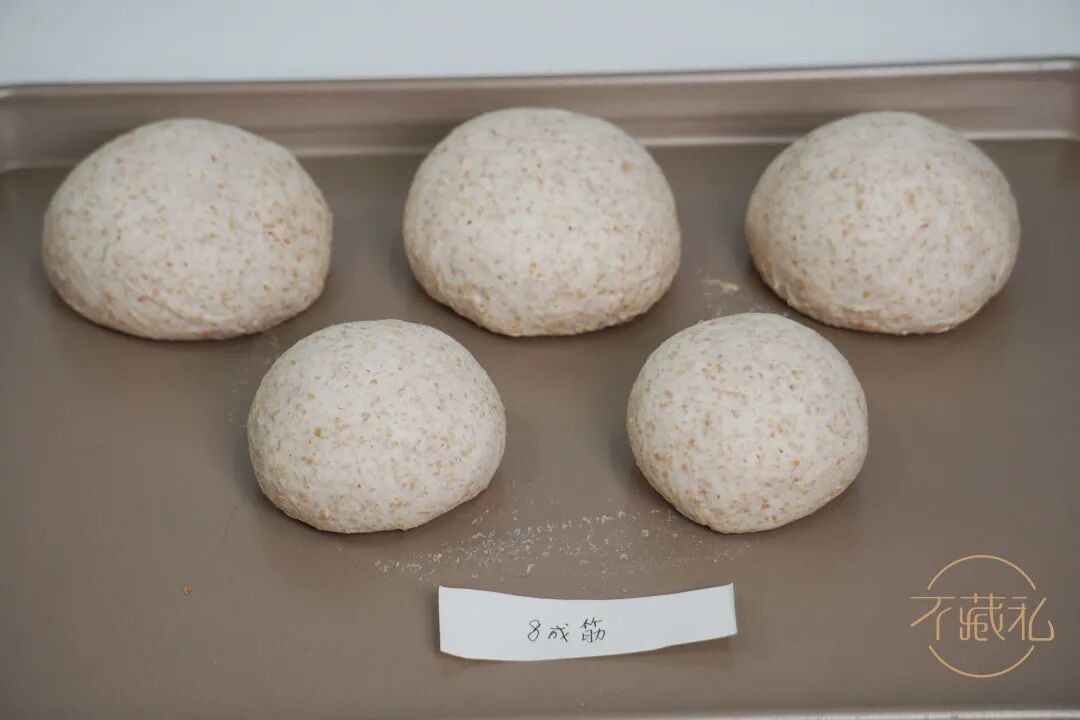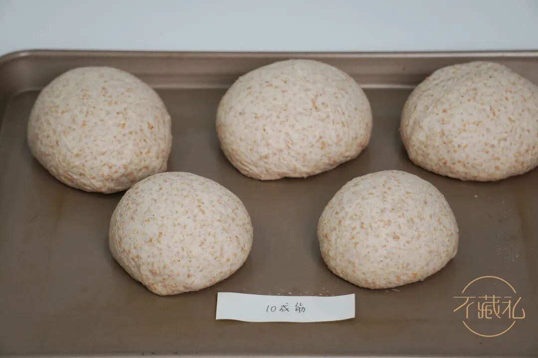 全麦面团本来的筋度不需要打得太强,但也要搅拌到完全扩展阶段。面筋搅打的程度不够或打过了,都会影响发酵、成品的口感。理论是这么说,那么实际操作真的是这样吗?来来来,本期不藏私好奇实验室就把全麦面团打到8成筋、10成筋,我们来看看会是怎么样。