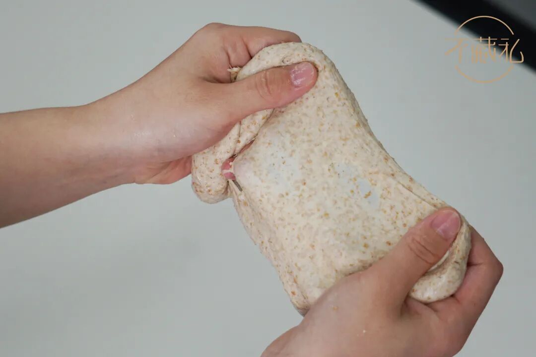 用20%-40%的全麦粉含量,做出来的吐司比较柔软,也是大众喜欢的口感,30%以下的,吃着就像吃软白吐司了。但这不是减脂人士追求的目标,吐司的麦香味也不浓。全麦粉添加的比例越大,出膜的时间越慢,这也是嘉嘉会觉得配方的面团很难打的原因之一,也越会牺牲掉柔软的口感,吃着是比较粗糙、刮喉,大家按需求添加即可。