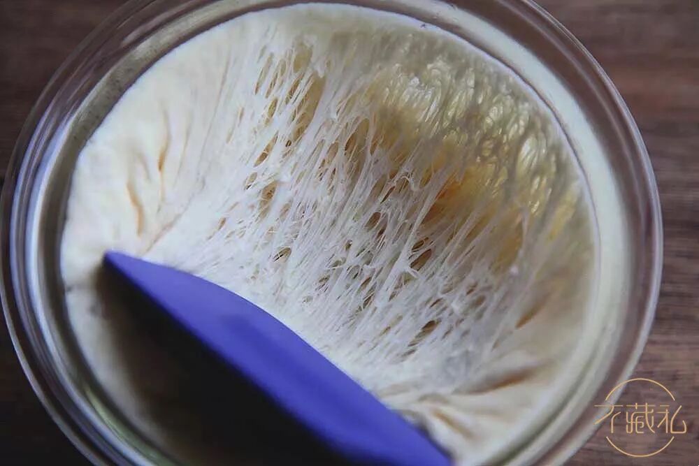 特别注意:中种面团是前置发酵的属性,面团中已经繁殖了更多了酵母,加入了中种的面团,基础发酵的时间要比常规时间短一些。