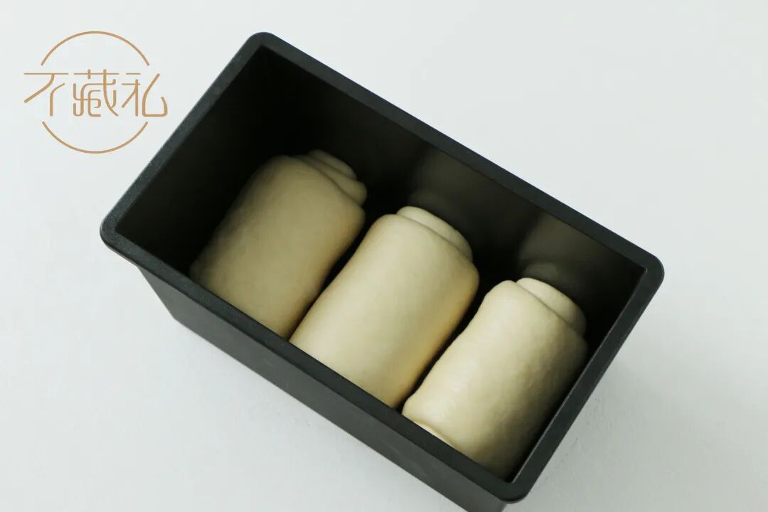 把2种卷好的面团分别装入吐司模具,在约31℃、湿度75%左右的环境下,做最终发酵。