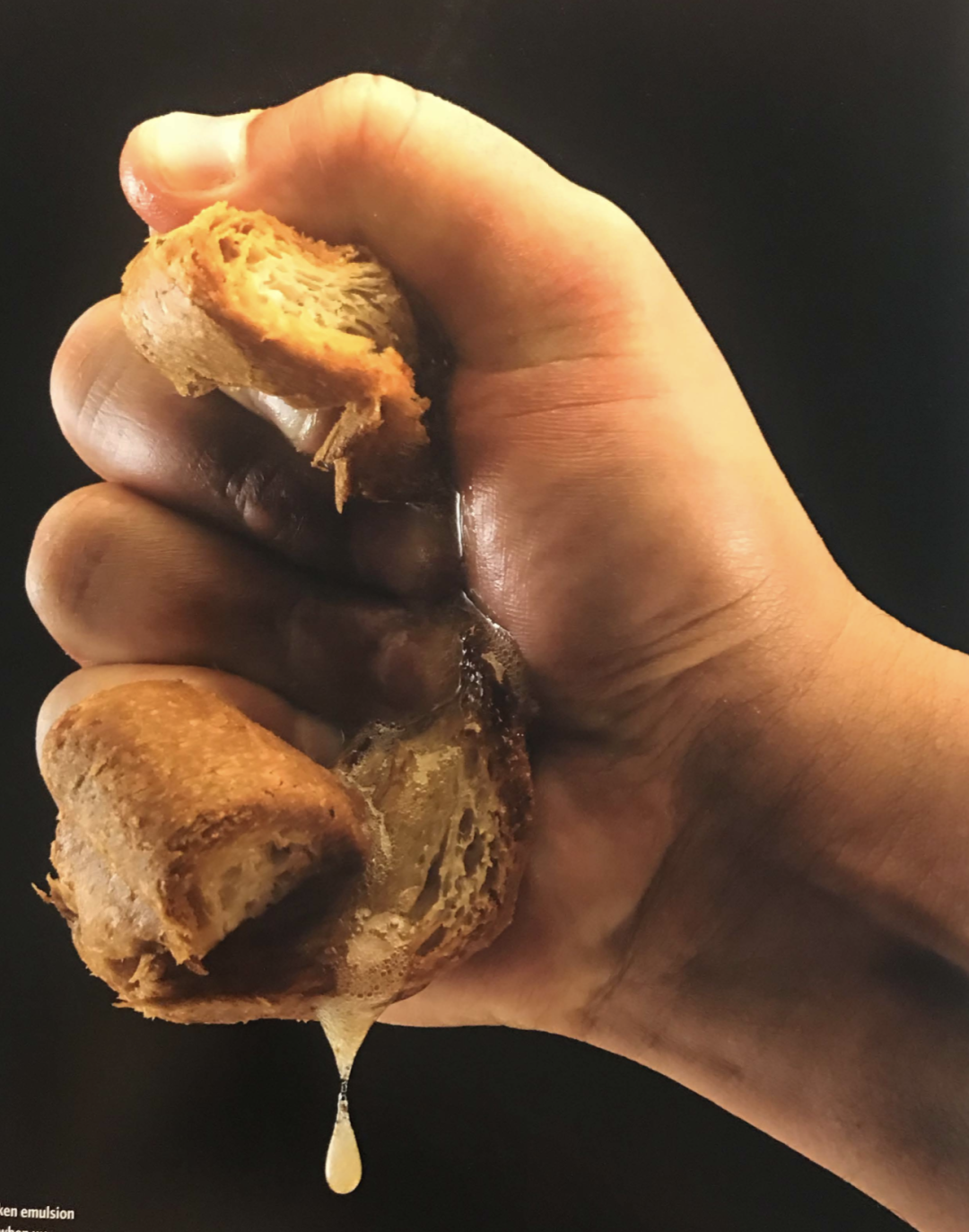 鸡蛋的蛋黄虽然含有乳化剂,但是蛋清中的蛋白质反而会让面包质地比较硬。用鹰嘴豆浸泡液代替鸡蛋,使得纯素布里欧修吃起来更加润泽软嫩。