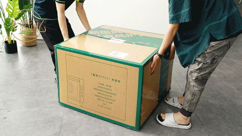 后来我发现开箱的小秘诀是,用剪刀把扎带剪断后,整个上盖就能打开,这个时候烤箱就出现在你的面前了,然后拿烤箱,不需要把它从箱子里抬出来。