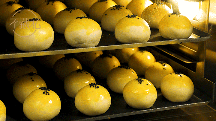 当然,不是所有食物都能6盘同烤,还要考虑高度。蛋黄酥就是其中一种,只能3盘同烤,90个一炉,也是考验这台风炉是否能烤得均匀的标准。