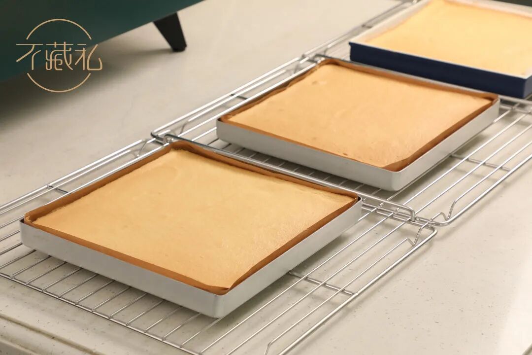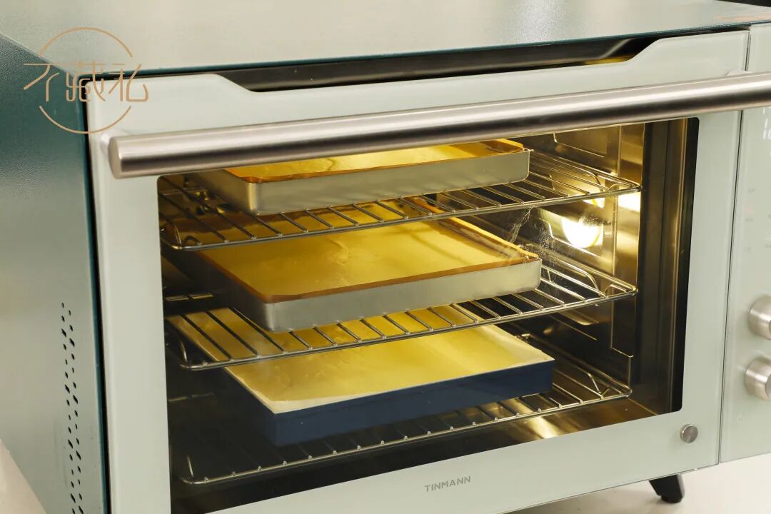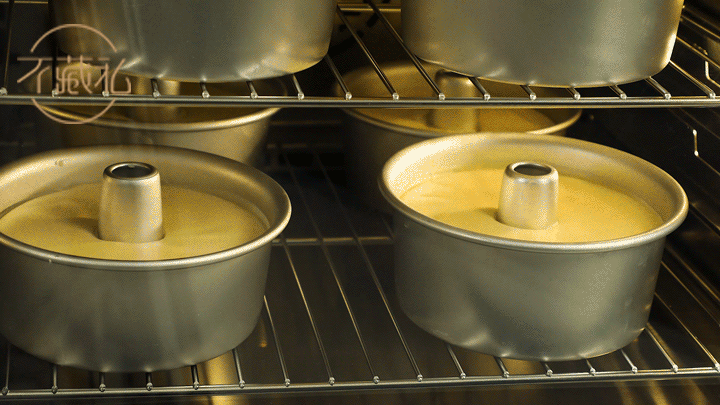 烘烤期间,蛋糕盘会因为被热风吹动而在烤盘里抖抖抖,好可爱啊。