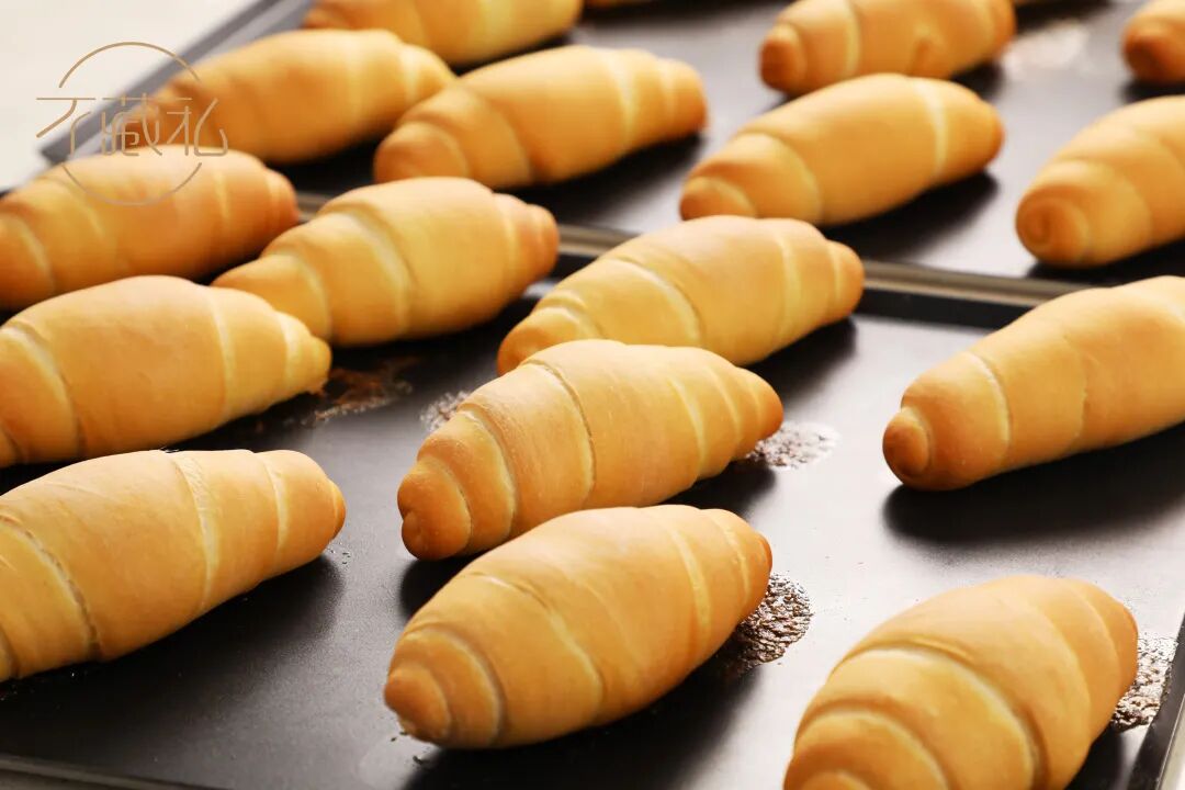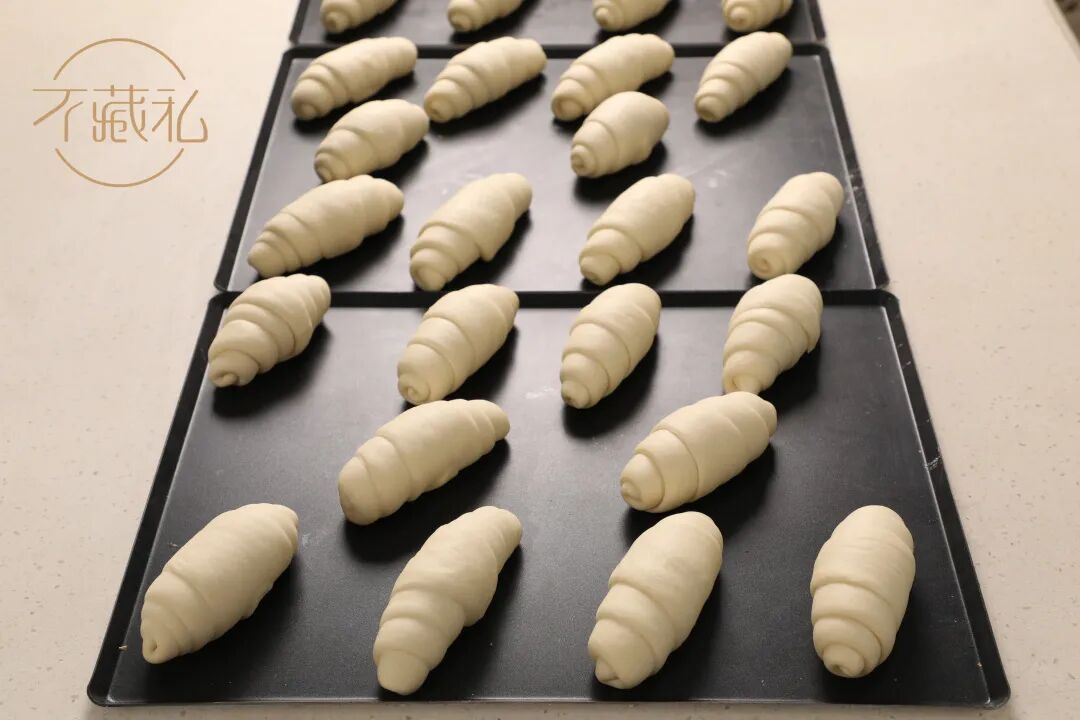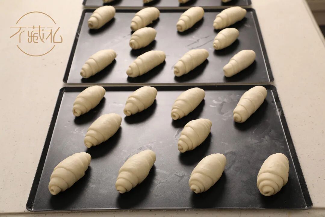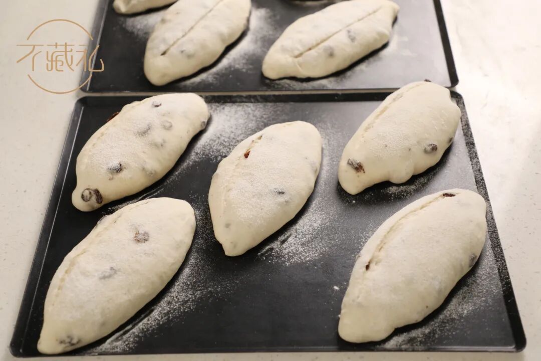 后来小编把发得慢的几个,放入普通发酵箱36℃再发了8-10分钟,面团“嗖”地涨起来了,跟前几个差不多高度。这时赶紧一起送入炉烤吧。