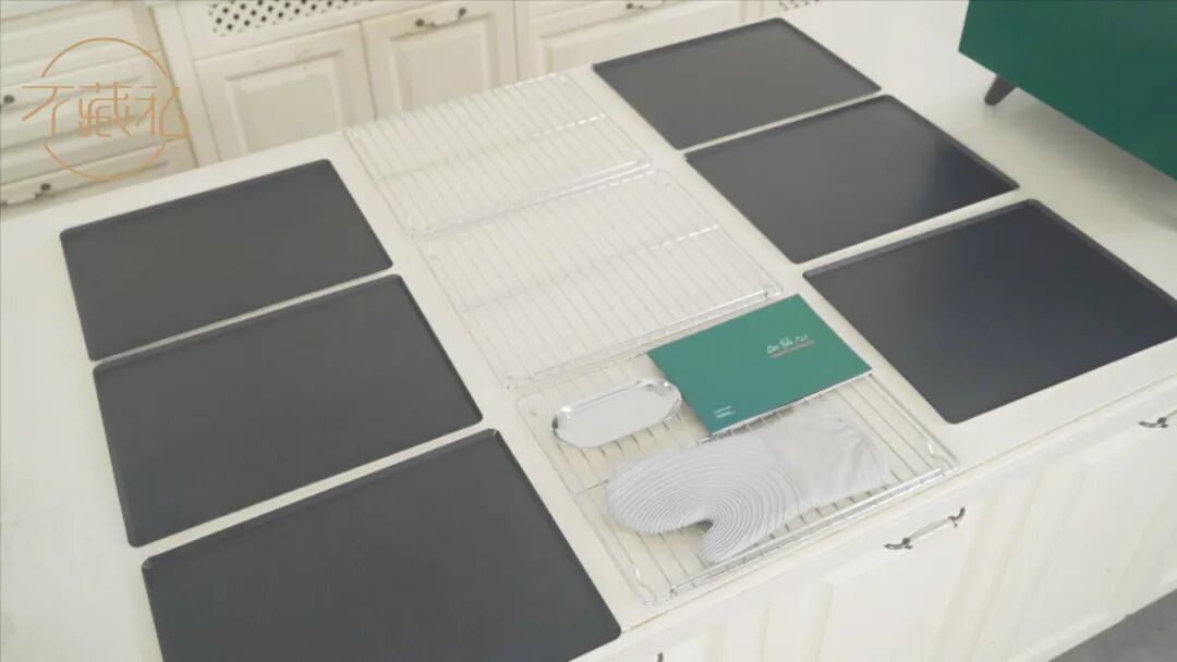 产品标配有6个防粘烤盘、3只不锈钢烤架、1只防烫手套、1只发酵水盘。