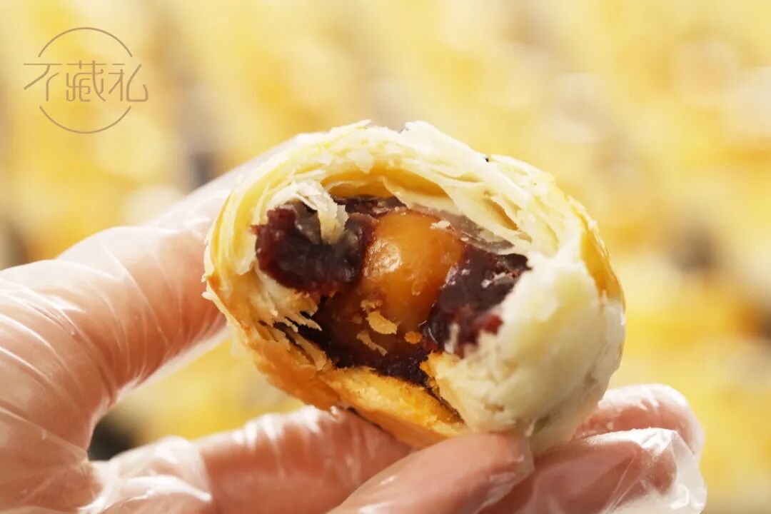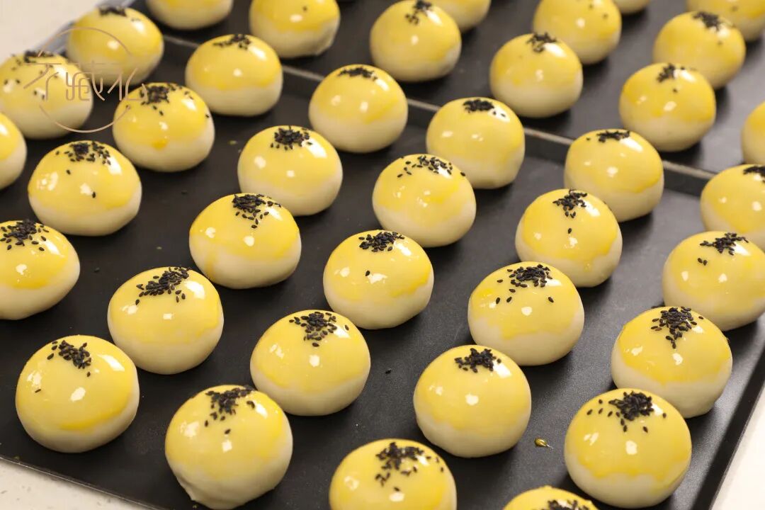 这次的蛋黄酥也是烤得成色完美均匀哦。