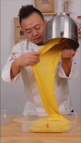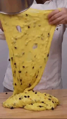再加入油脂和食盐搅拌至面团光滑,此时约八成面筋(手套膜状态)。