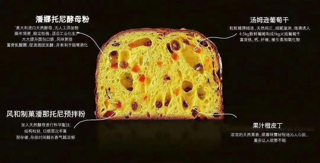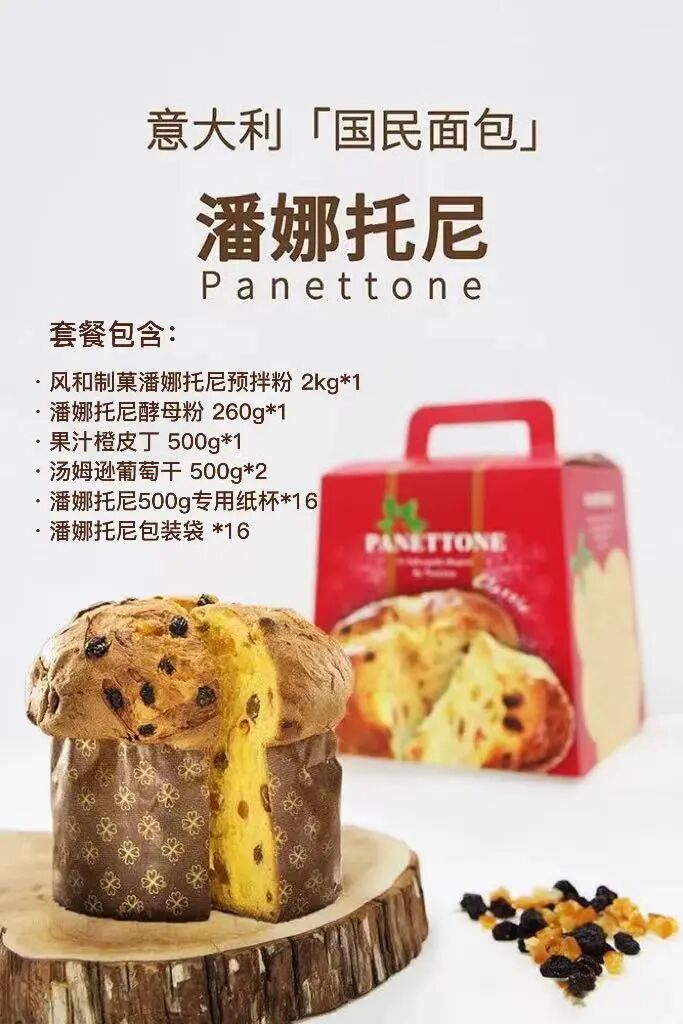 接下来,我们一起看看风和制菓家的潘娜托尼预拌粉应该如何应用吧。此配方可以出三个500g潘娜托尼,想要做多or做少的小伙伴都可以按比例自行调整哦!