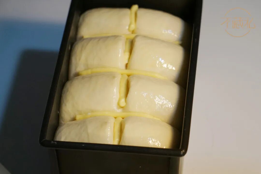 8.最后发酵:发酵温度33-35℃,时间约50分钟,面团发至吐司模具8分满。