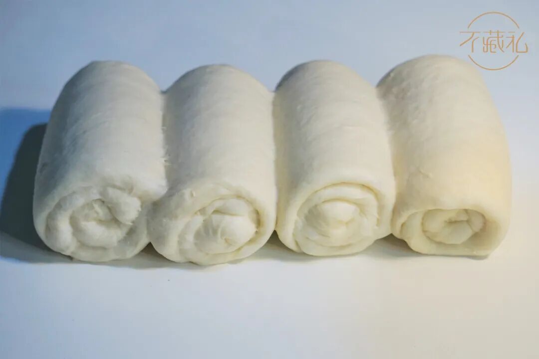 6.分切:125g/个,共4个,滚圆松驰(密封),室温(26-28℃),时间约10分钟(室温比较高、滚圆不太紧的情况下)。