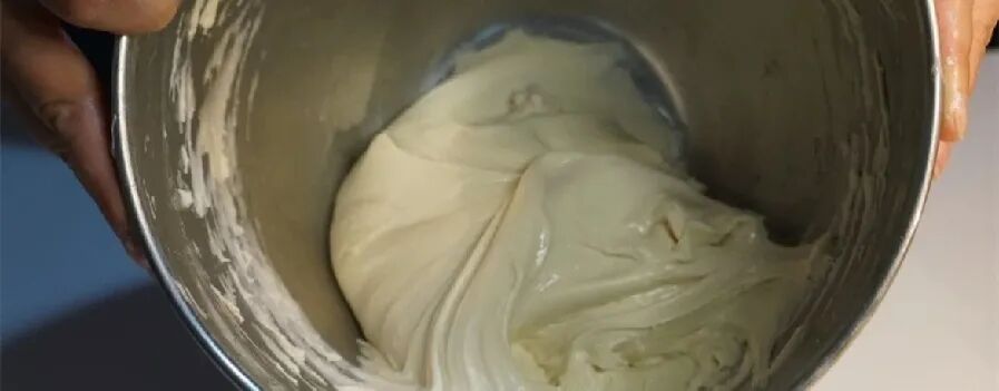 ▷ 中种搅拌成团进行室温发酵90分钟,发酵好的中种面团有明显的发酵风味。