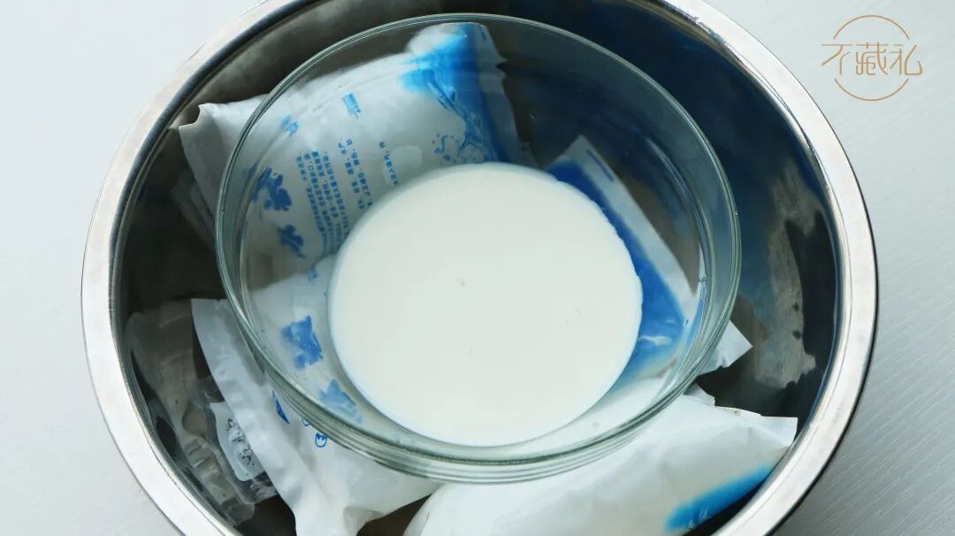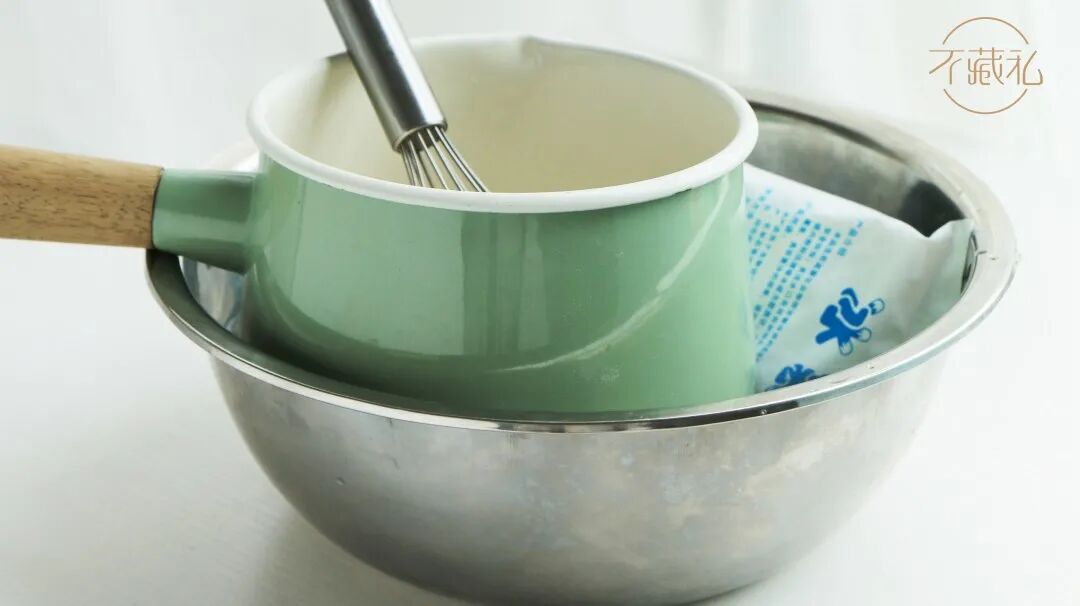 另外,平时制作慕斯需要加热液体来融化吉利丁,慕斯糊又需要降温才能与淡奶油混合,可以用冰袋代替冰块做成冰水盆,把需降温的食物带锅座在上面,能帮助快速降温,省下不少时间呢~这种方法在各类淋面液的降温操作时都适用哦!