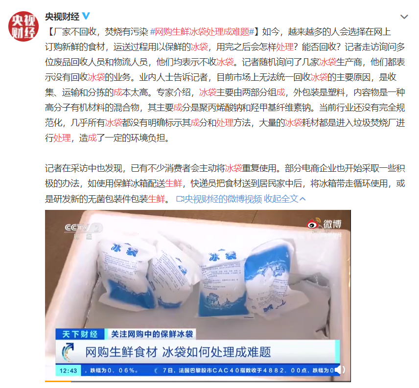 生物冰袋和注水冰袋,是快递包裹中最常见的种类。