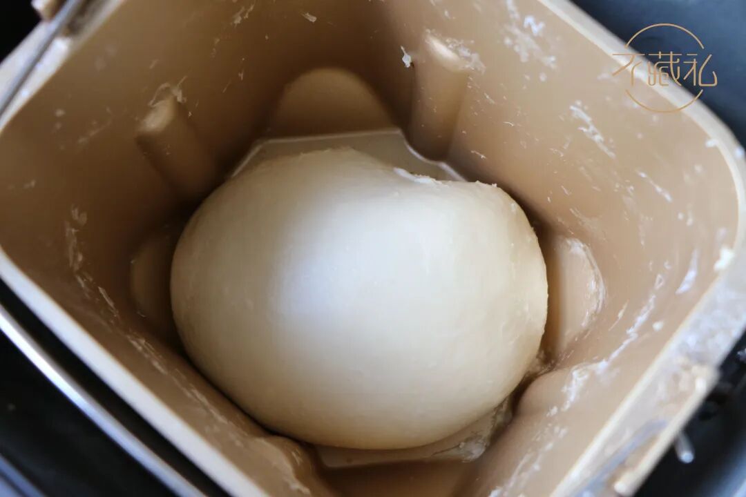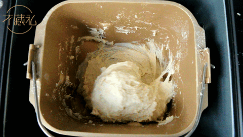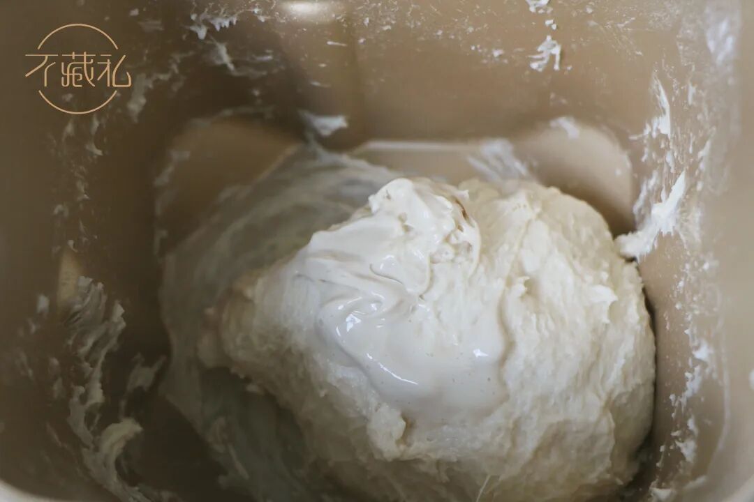 ▲先不加酵母液的原因继续往下看。全程开盖揉面,可以散热。期间用软刮刀,把四边、底部的面团刮一下,辅助面包机更好地打面。