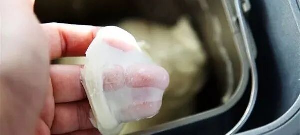 ● 因为面包机打面过程升温比较快,又不能在桶身包冰袋(发热管沾水会容易损坏,小编也不想这么麻烦),所以要在材料、做法上做降温: