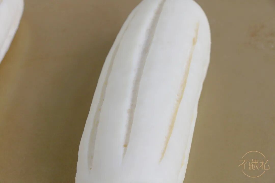 ●割口时,冰博克面团比较流畅,不粘刀,普通牛奶面团则比较粘刀。
