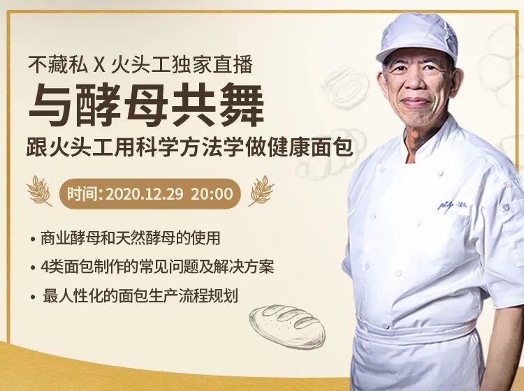 如果你想知道更多关于发酵的干货,火头工老师的直播课「与酵母共舞」就一定不能错过啦!这次的直播是火头工面包训练营学员专属,所有参加了训练营的同学都可以免费观看!