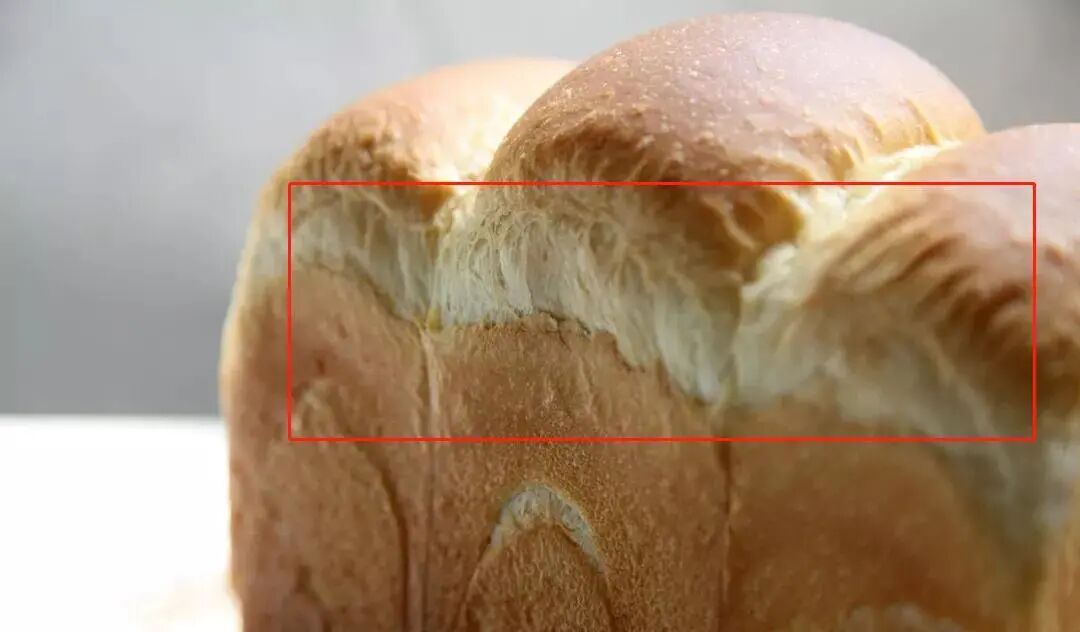 正常的涨痕:吐司在烘烤后,从模具边缘开始裂开的痕迹,正常宽度2-3cm左右,均匀分布在吐司两侧。