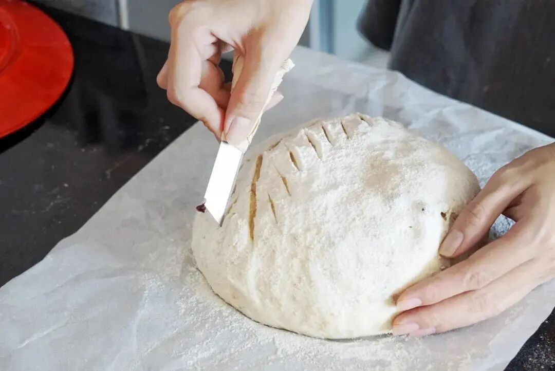 ① 割包一定要迅速且毫不犹豫,因为太慢的话割刀容易粘在面团上面。