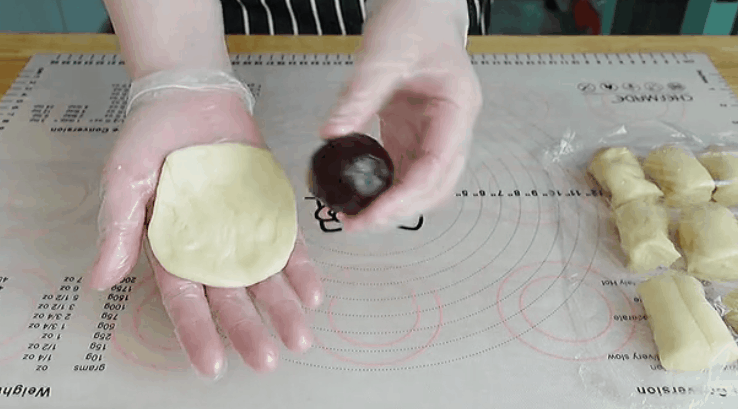 ②食材软硬适中:油皮和酥皮面团要软硬适中,太硬的话不好擀开,太软的话手温会使面团油脂融化,变得粘手。另外油皮和酥皮最好保持软硬度一致,更好擀开。